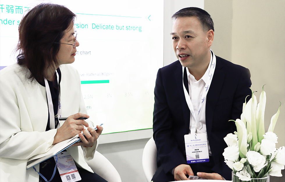 开展首日上午,诺邦股份董事总经理龚金瑞接受荣格工业传媒工业资讯经理 陈志琴采访,从诺邦本次展会主要展出产品,企业所具有的市场竞争优势和未来发展思路,以及如何应对当下市场需求和行业变化进行了交流;同时,龚总对未来的产品、技术与市场趋势等,进行了分析和表示期待。