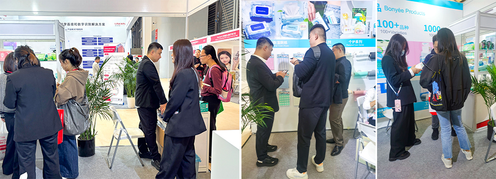 在竞争日趋激烈的全球个护市场,创新与品质成为品牌赢得认可的关键。邦怡为此番参展做了充分准备,重点展示了其个人护理系列产品,包括洗脸巾、湿巾、湿厕纸、宠物湿巾等多样化样品。其中,可冲散系列和珍珠纹系列小卷产品凭借其环保理念与卓越的使用体验,吸引了大量咨询、深入洽谈。